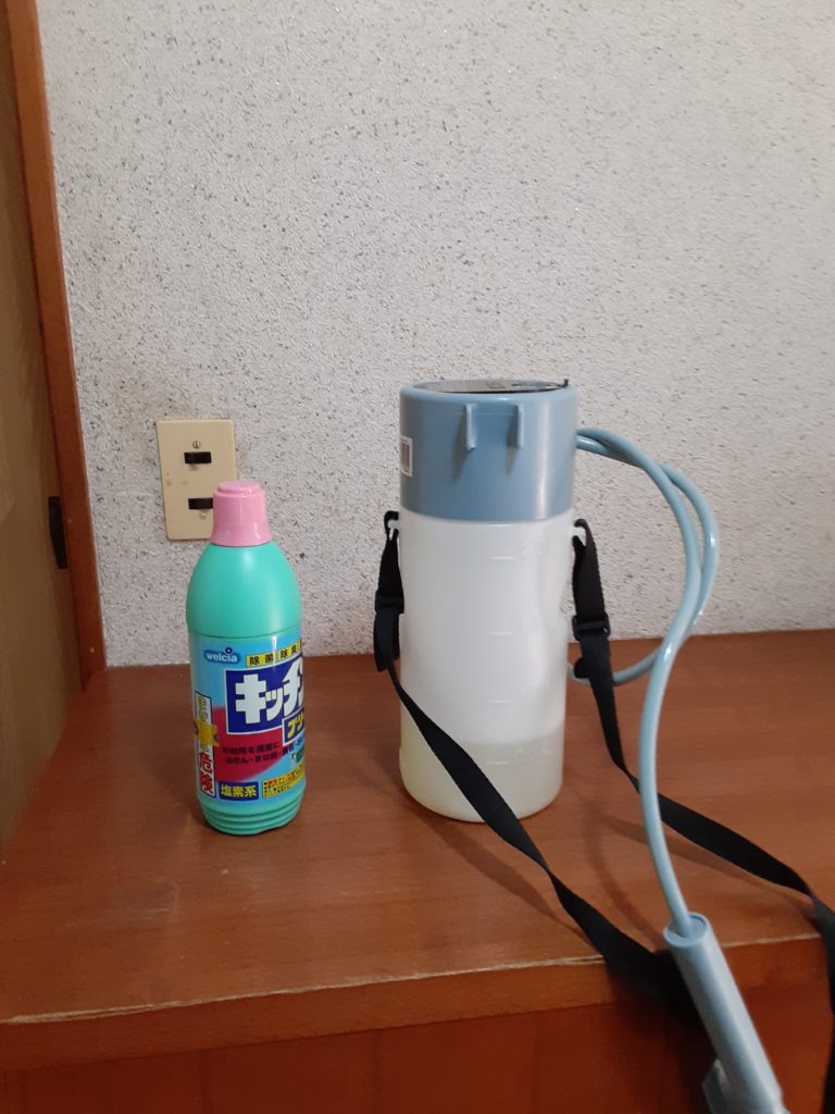 キッチンハイターを2本原液のまま噴霧器に入れます。