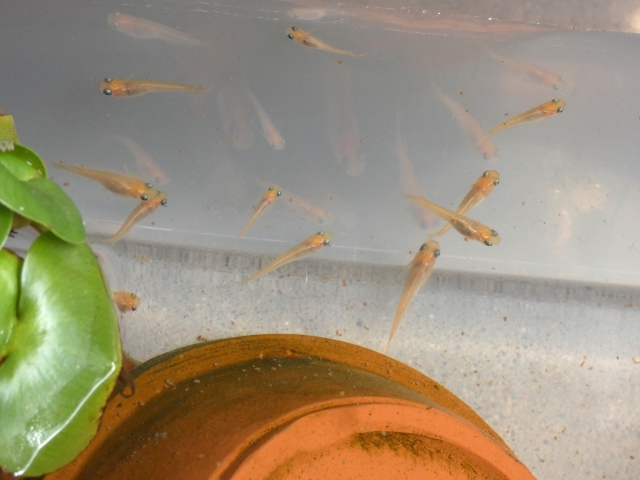 稚魚もたくさん増えたのでトロ舟(コンクリートをこねる容器)を追加で購入して、