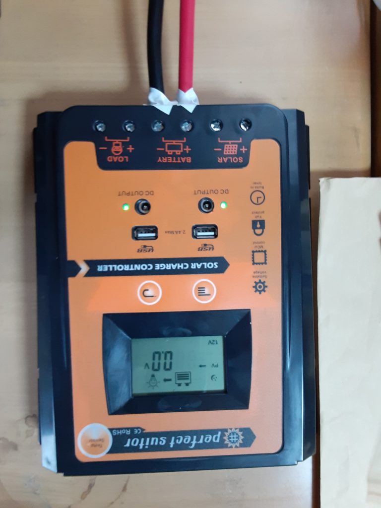チャージコントローラーを見てみると発電してそうな表示でした。