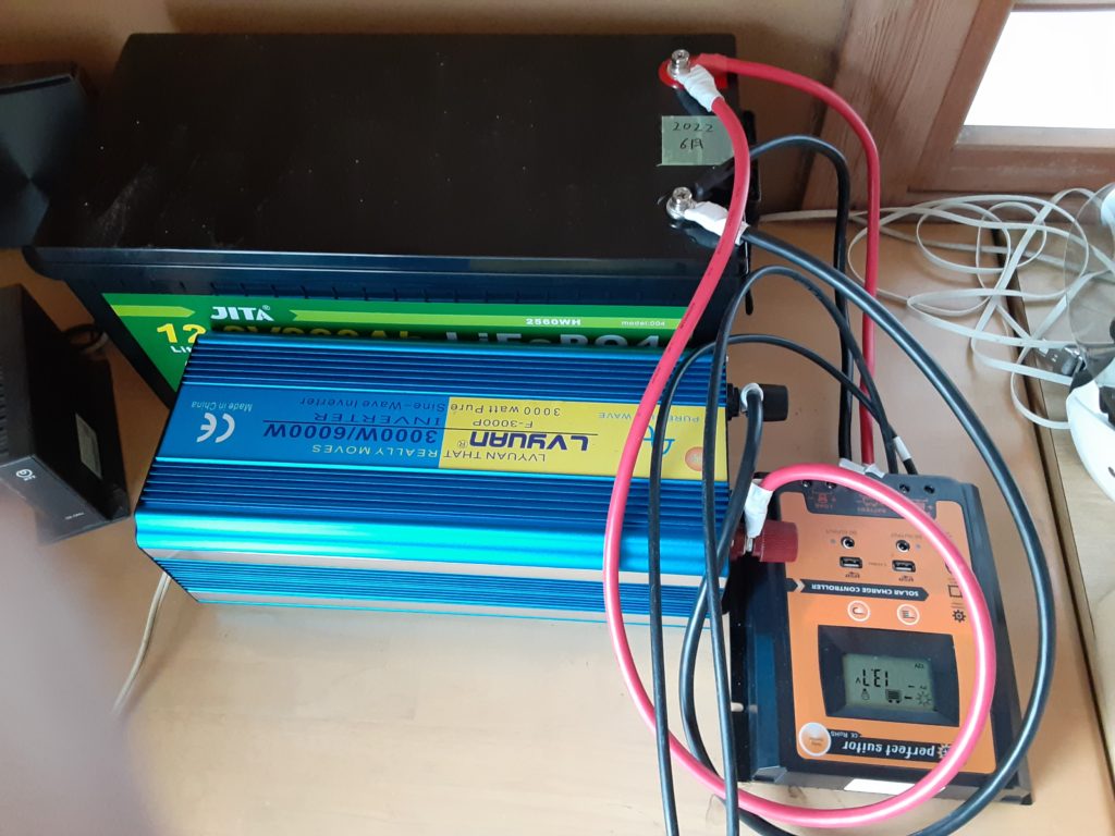 バッテリーとチャージコントローラーをつなぐケーブルを